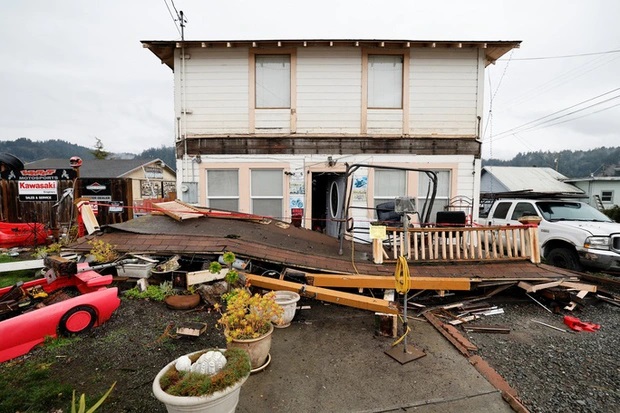 Mái hiên tầng hai của một ngôi nhà bị sập sau trận động đất mạnh ở Rio Dell, bang California - Mỹ hôm 20-12. Ảnh: Reuters