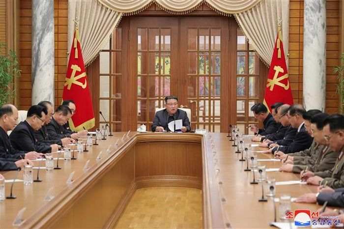 Nhà lãnh đạo Kim Jong-un (giữa) chủ trì phiên họp Bộ Chính trị của Đảng Lao động Triều Tiên tại Bình Nhưỡng ngày 30/11. Ảnh: Yonhap/ TTXVN