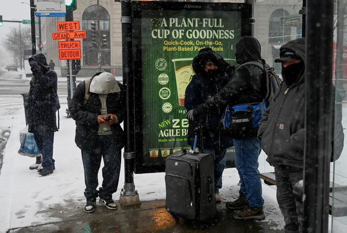Nhiều người chờ đợi tại trạm xe buýt trong thời tiết lạnh giá ở Chicago, Illinois - Mỹ hôm 22-12. Ảnh: Reuters