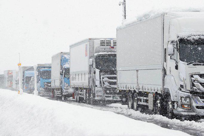 Hàng trăm ô tô và xe tải giao hàng bị mắc kẹt trên đường cao tốc ở Niigata. Ảnh: Kyodo News