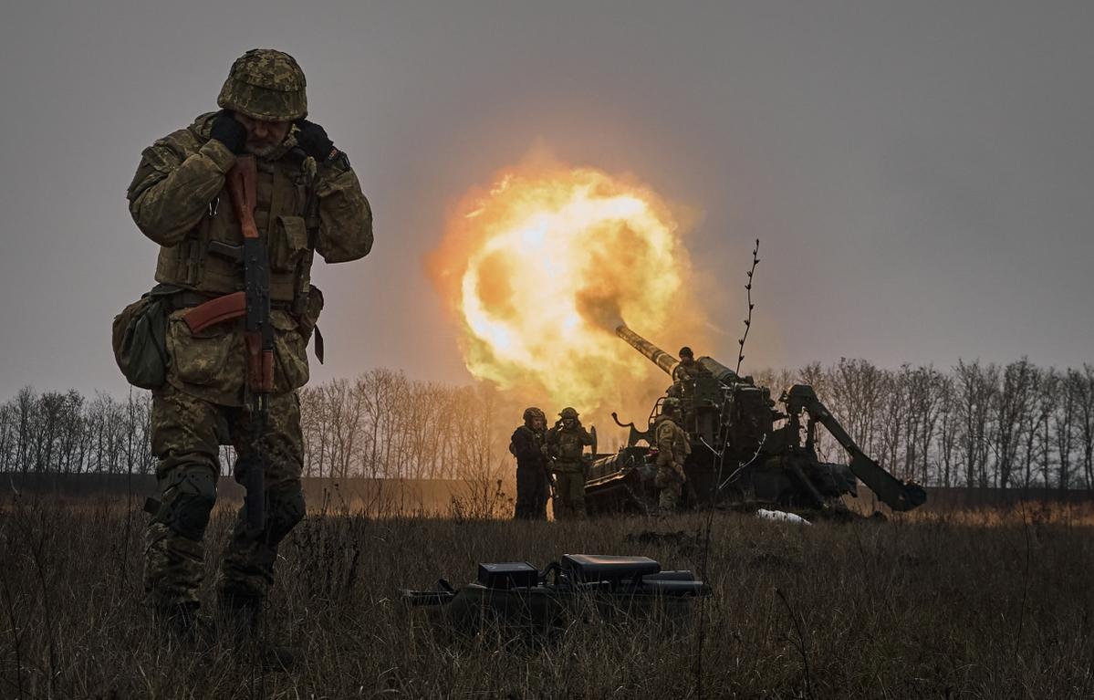 Ukraine khai hỏa pháo tự hành Pion ở Bakhmut, khu vực Donetsk ngày 16/12. Ảnh: AP