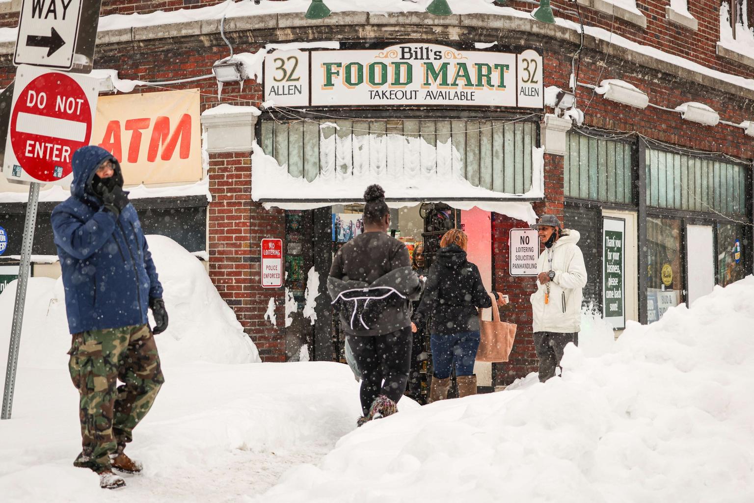 Người dân xếp hàng vào chợ thực phẩm sau cơn bão mùa đông ở Buffalo. Ảnh: Reuters.