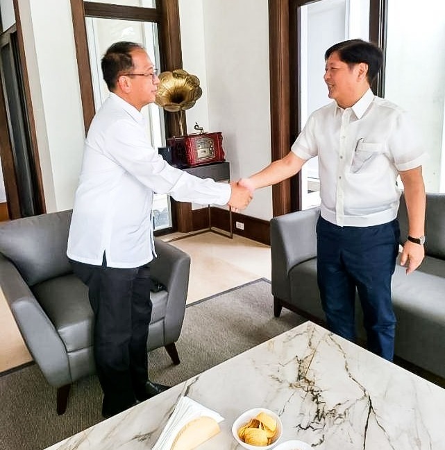 Tổng thống Ferdinand Marcos (bên phải) bắt tay ông Carlito Galvez. Ảnh: Văn phòng tổng thống Philippines.