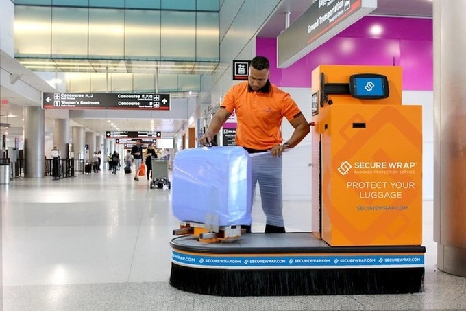 Nhằm đảm bảo an toàn cho hành lý của mình, du khách nên bọc màng bảo vệ ở quầy đóng gói (Ảnh: News).