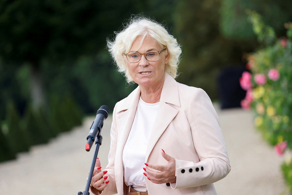 Bộ trưởng Quốc phòng Đức Christine Lambrecht phát biểu tại nhà khách chính phủ Schloss Meseberg gần thị trấn Gransee, bang Brandenburg tháng 8/2022. Ảnh: Reuters.