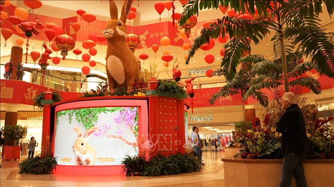 Tại California, một điểm đến không kém phần hấp dẫn trong Tết Con thỏ của người Trung Hoa là South Coast Plaza, tọa lạc tại Costa Mesa - trung tâm mua sắm lớn nhất ở Bờ Tây của nước Mỹ. Nơi đây có một chú thỏ cao gần 5 m, bao quanh là hàng trăm chiếc đèn lồng may mắn giữa một khu vườn đầy tiền vàng và thỏi vàng, thể hiện lời cầu chúc may mắn và thịnh vượng trong năm mới.