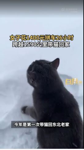 Hành trình cô Châu đưa hai mèo cưng từ Bắc Kinh về quê nhà ở tỉnh Hắc Long Giang đón Tết.