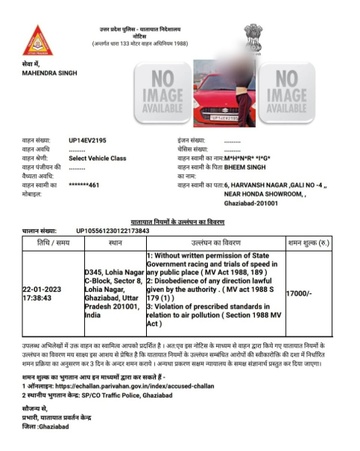Giấy phạt 17.000 rupee được cảnh sát thành phố Ghaziabad đăng tải trên Twitter. Ảnh: ghaziabadpolice/Twitter.