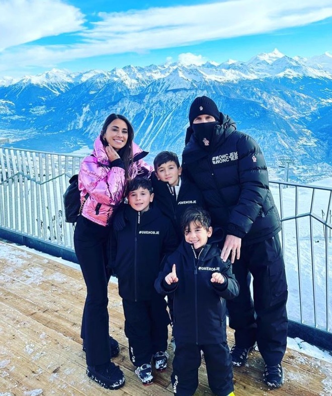 Lionel Messi tận dụng những ngày nghỉ ít ỏi để đưa vợ và các con đến Crans-Montana, trung tâm của dãy núi Alps (Thụy Sĩ). Siêu sao người Argentina vốn quen với thời tiết ấm áp nên phải mặc bộ đồ giữ ấm toàn thân.