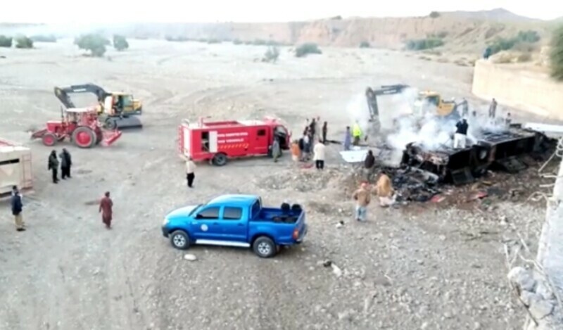 Theo như sau khi một chiếc xe buýt rơi xuống khe núi và bốc cháy ở tỉnh Balochistan, miền Nam Pakistan, khiến các quan chức nước này vào ngày 29/1 cho biết có hơn 40 người đã thiệt mạng lúc chiếc xe đâm vào một cây cầu, sau đó rơi xuống khe núi và bốc cháy .