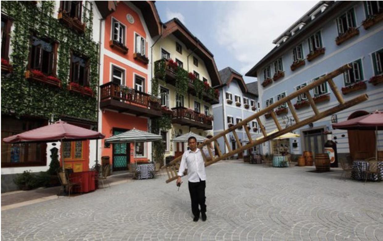 Bản sao Hallstatt của Trung Quốc tốn 940 triệu đô la để xây dựng. Dự án này đã gây ra tranh cãi bởi chính những người bản địa của Hallstatt phản đối.