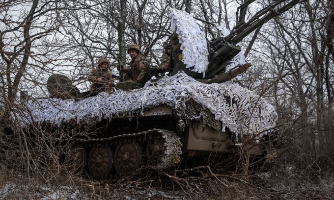 Một đơn vị Ukraine triển khai gần tiền tuyến ở tỉnh Donetsk hôm 1/2. Ảnh: Reuters.