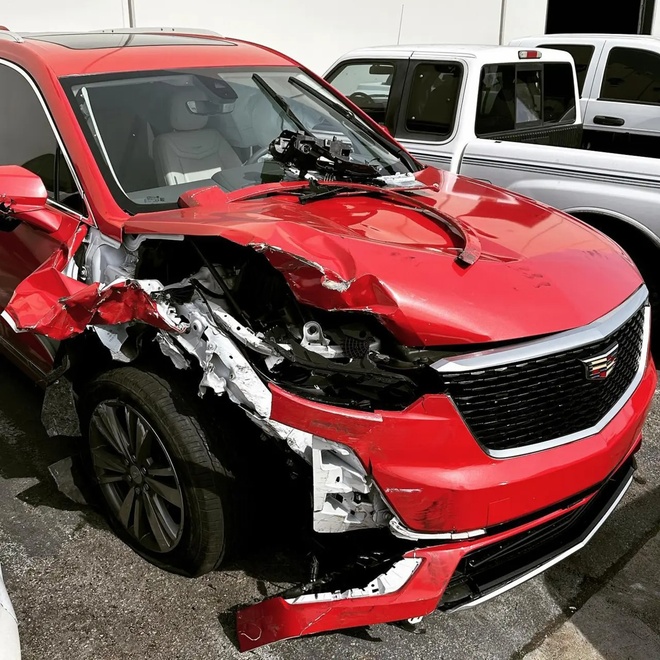 Hình ảnh chiếc xe hư hỏng được nam diễn viên đăng tải. Ảnh: The Rock.