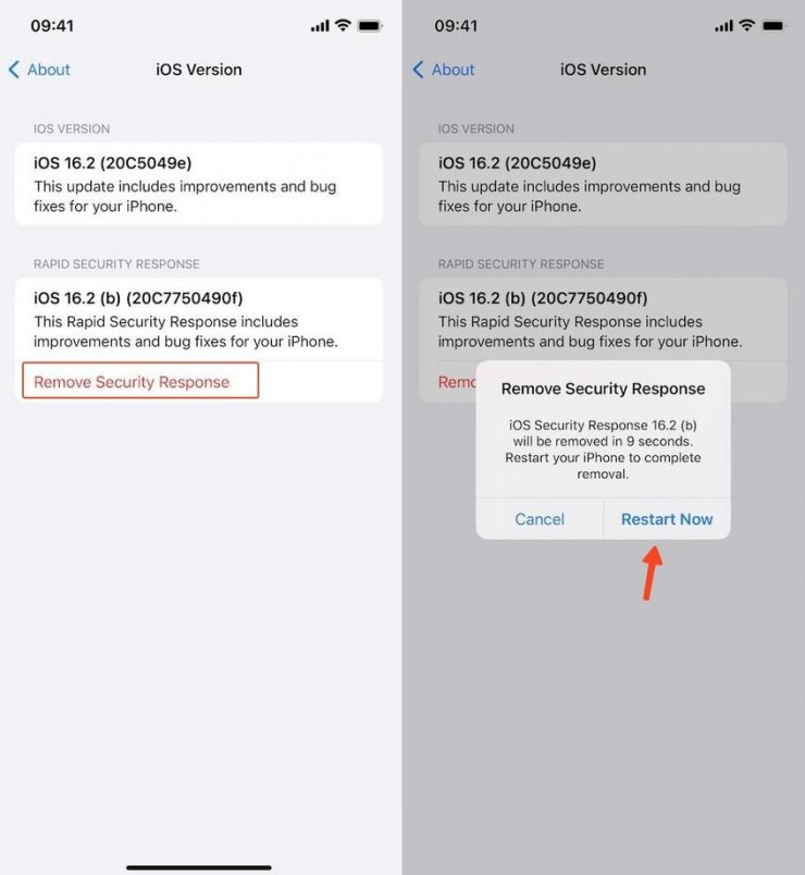 Tuy nhiên, đôi khi các bản cập nhật bảo mật cũng có thể gây ra sự cố riêng. Do đó, nếu vô tình gặp sự cố sau khi cài đặt các bản cập nhật, bạn có thể gỡ bỏ chúng bằng cách vào Settings (cài đặt) - General (cài đặt chung) - About (giới thiệu) - iOS version (phiên bản iOS), sau đó nhấn Remove Security Response (xóa phản hồi bảo mật) - Remove (xóa).