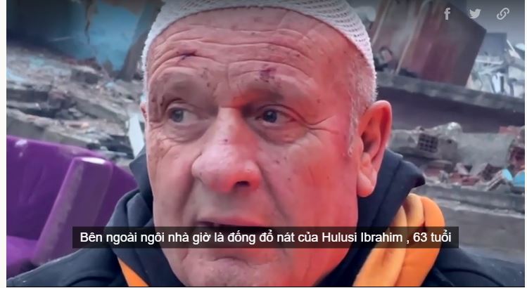 Người sống sót sau động đất kể lại giờ cuối bên vợ. Sau khi trận động đất rạng sáng 6/2 khiến căn nhà đổ sập, ông Hulusi Ibrahim ở bên vợ vài giờ trước khi thoát ra ngoài, dù bà không có phản ứng.