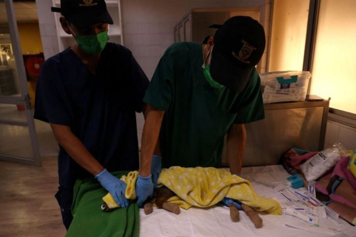 Một con Pudu, con nai nhỏ nhất thế giới, được giải cứu khỏi đám cháy rừng, được các bác sĩ thú y chăm sóc tại trung tâm phục hồi động vật hoang dă của Đại học Concepcion, khi cháy rừng tiếp diễn ở khu vực trung nam Chile, ở Chillan, Chile, ngày 8 tháng 2 năm 2023. REUTERS/ Ivan Alvarado REUTERS