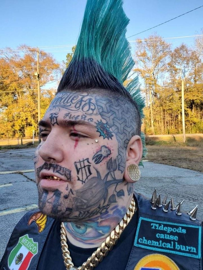Nam rapper bắt đầu xăm mình cách đây 6 năm. Anh đã chi hàng nghìn USD cho các họa tiết bao phủ mặt, cổ, da đầu, vết sẹo trên mắt và gắn răng vàng vĩnh viễn.
