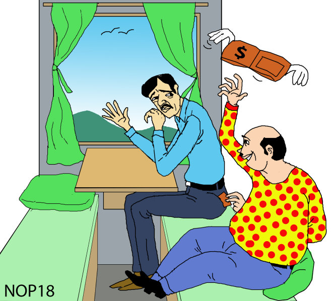 Có tiếng nhân viên tàu hỏa mời chào khách điểm tâm, giải khát. Tôi nghĩ mình nên tự thưởng chút gì đó, một lon Coca Cola chẳng hạn. Tôi đưa tay định rút ví thì ôi thôi, túi quần rỗng không! Thời buổi gì mà cứ hễ xuất hiện bất cứ thứ dịch vụ mới nào, dù ta có dùng hay không thì vẫn cứ bị móc túi, còn họ vẫn cứ thắng như thường.