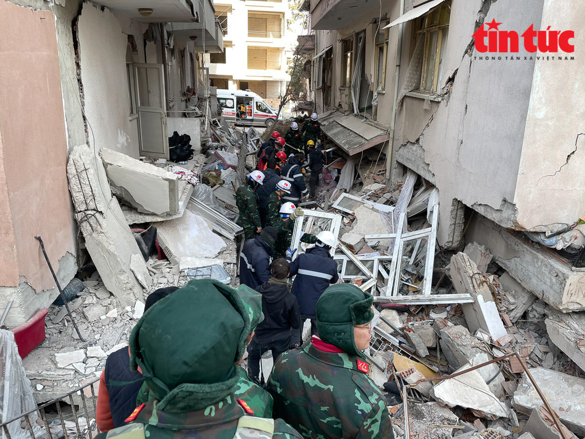 Kết thúc ngày làm việc đầu tiên, Đội công tác và chó nghiệp vụ Tổ trinh sát số 1, Đội Công binh cứu sập của Quân đội nhân dân (QĐND) Việt Nam đã hoàn thành nhiệm vụ hỗ trợ tìm kiếm cứu nạn tại tỉnh Hatay, Thổ Nhĩ Kỳ.