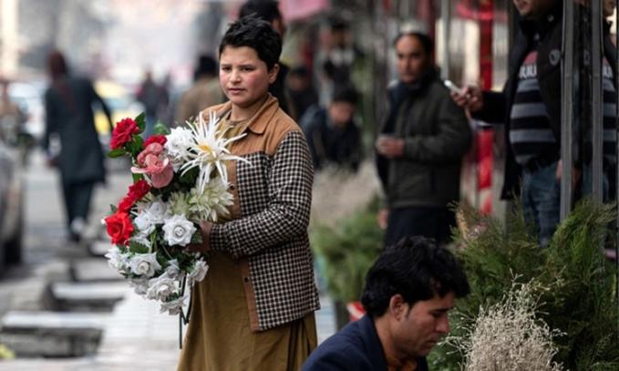 Một phụ nữ bán hoa ở thủ đô Kabul, Afghanistan, trong ngày lễ Valentine 14/2. Ảnh: AFP.