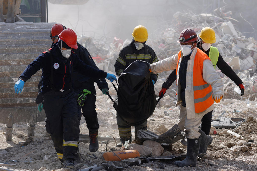 Lực lượng cứu hộ di chuyển thi thể một nạn nhân trong thảm họa động đất ở thành phố Antakya, Thổ Nhĩ Kỳ, ngày 16/2. Ảnh: Reuters