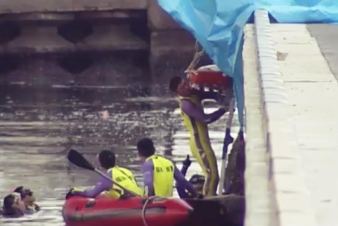 Nhà chức trách tìm kiếm thi thể nạn nhân ở vịnh Hakata, Fukuoka, năm 2003. Ảnh: NipponTV