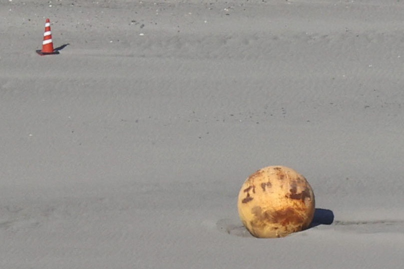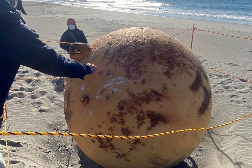 Khối kim loại hình cầu trôi dạt vào bờ biển Nhật Bản. Ảnh: Reuters.