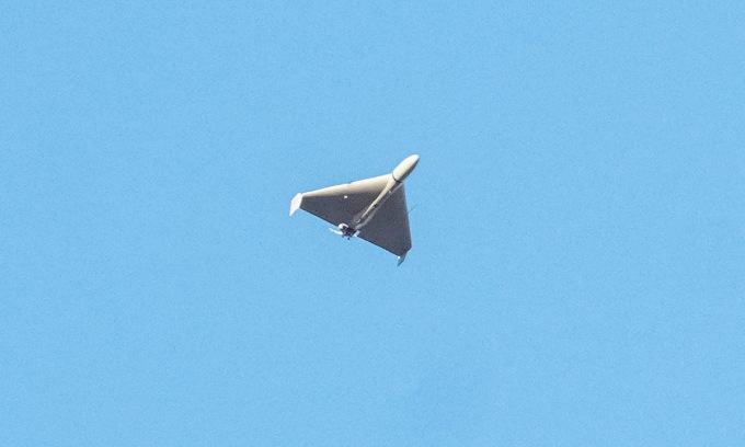 UAV tự sát Nga trên bầu trời thủ đô Kiev của Ukraine hồi tháng 10/2022. Ảnh: AFP.