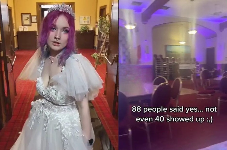 Chưa tới một nửa khách mời đã xác nhận tham dự xuất hiện tại tiệc cưới của vợ chồng Gray Narvaez-Dragion. Ảnh: @grayanxiety/TikTok.