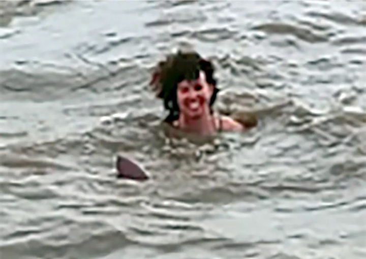 Claire Bye, 28 tuổi, người Anh đã suýt chết vì bị một con cá heo cắn khi đang bơi trên một con sông ở Santa Rosa de Yacuma, Bolivia.