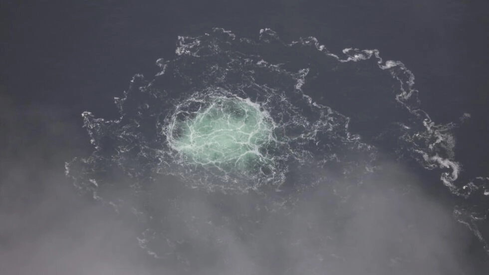 Ảnh do lực lượng tuần duyên Thụy Điển cung cấp cho thấy một lổ hổng trên đường ống dẫn khí đốt Nord Stream 2 ngày 28/09/2022. AP