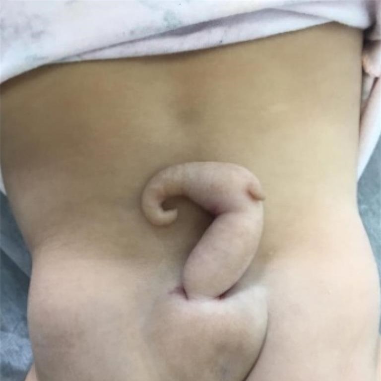 Các bác sĩ phải phẫu thuật cắt bỏ phần “đuôi” dài 6cm của đứa trẻ được bao phủ bởi da lưng. Hình ảnh về trường hợp đáng chú ý đã được công bố trên Tạp chí Journal of Pediatric Surgery Case Reports.