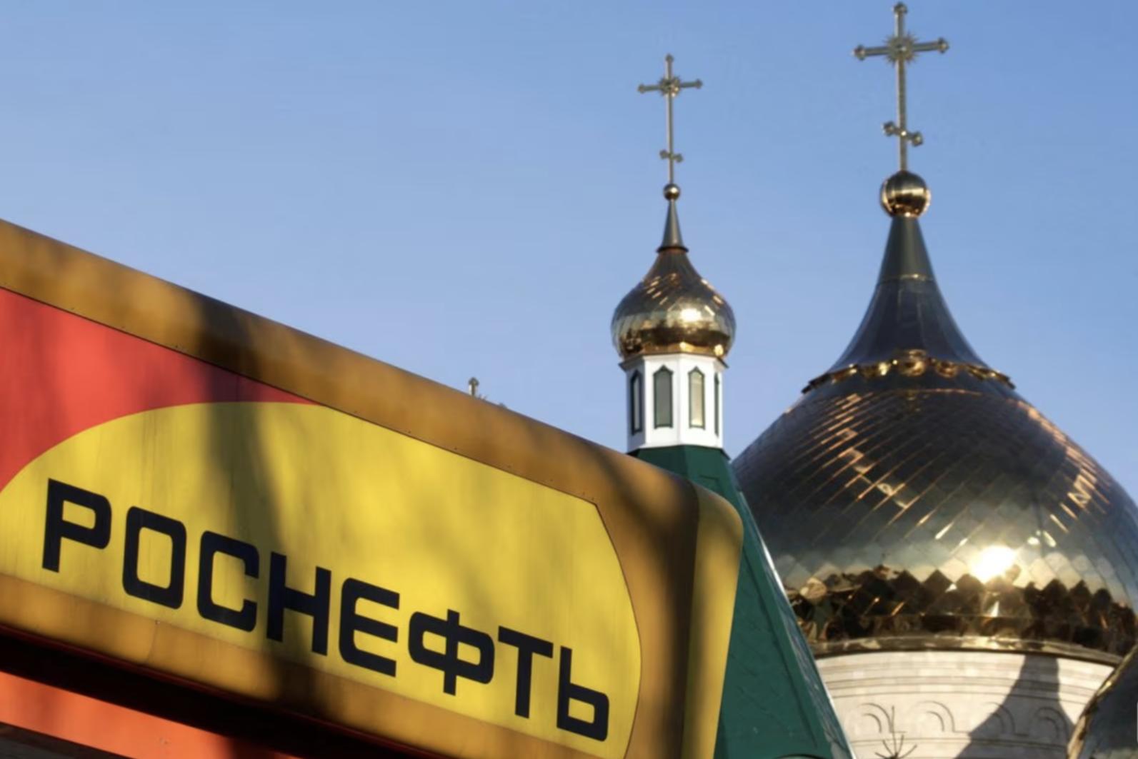 Logo của nhà sản xuất dầu thô lớn nhất Nga, Rosneft tại thành phố Stavropol, miền nam Nga. Ảnh: Reuters