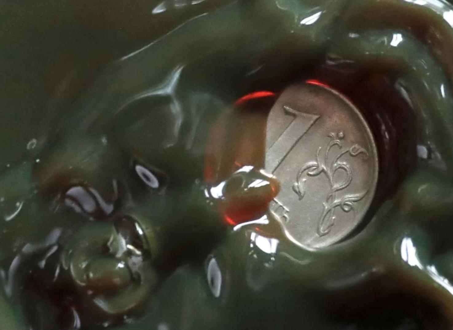 Hình ảnh minh họa đồng 1 ruble Nga trong dầu thô tại phòng thí nghiệm ở Mỏ dầu Yarakta, Vùng Irkutsk, Nga. Ảnh: Reuters