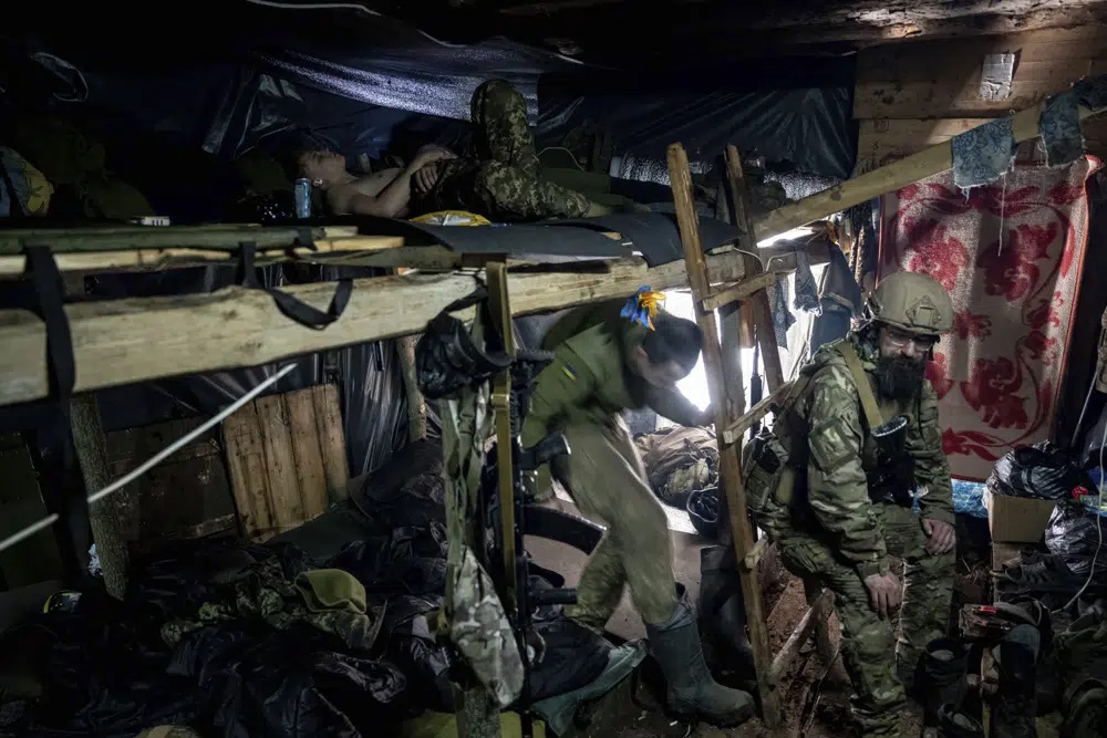 Nhóm binh sĩ Ukraine ngủ trong căn hầm chật chội ở chiến trường Doneskt (ảnh: Washington Post)