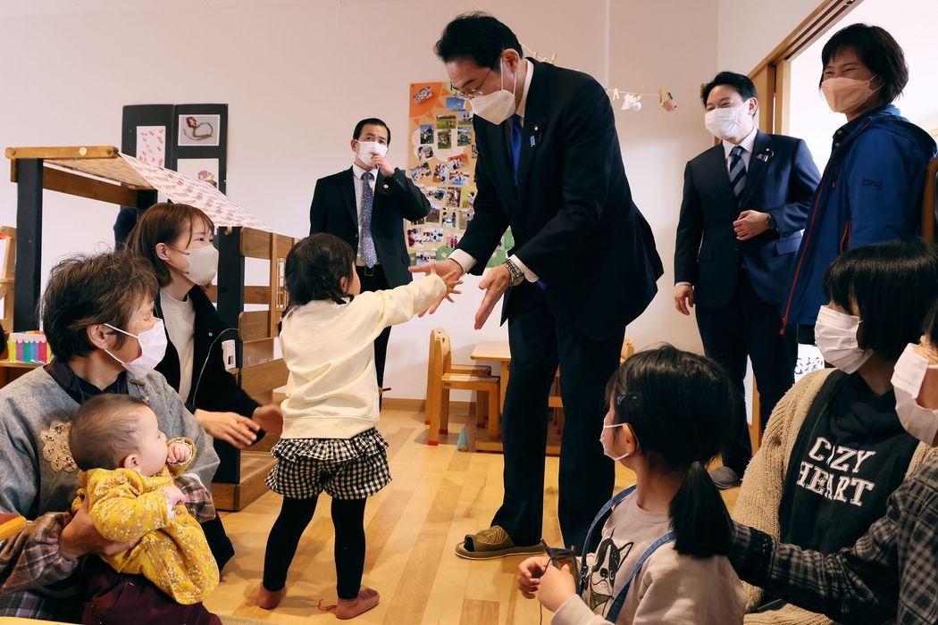 Thủ tướng Fumio Kishida đến thăm một trung tâm ở Nagi, nơi các gia đình được trợ giúp nuôi dạy trẻ em. Ông đã đặt việc giải quyết tỷ lệ sinh thấp của Nhật Bản lên hàng đầu trong chương trình nghị sự của mình. Ảnh: Văn phòng Thủ tướng Nhật Bản.