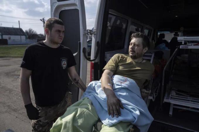 Trên xe, nhiều người lính vẫn còn đi ủng chiến đấu, đầu băng bó kín mít, những đôi tay đen thui, cáu bẩn, thân thể lấm bụi dưới chăn. Đây là những binh sĩ bị thương nặng ở Bakhmut, được các thành viên tổ chức Hospitallers, gồm các nhân viên y tế tình nguyện làm việc tại tiền tuyến, khiêng vào xe chạy chữa.