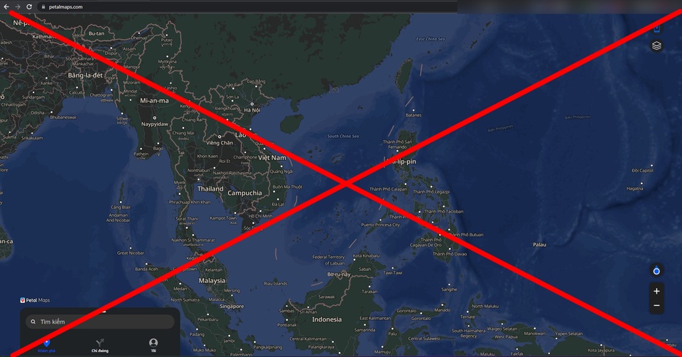 Bản đồ Petal Maps gốc cũng xuất hiện "đường lưỡi bò" phi pháp. Ảnh: HP.