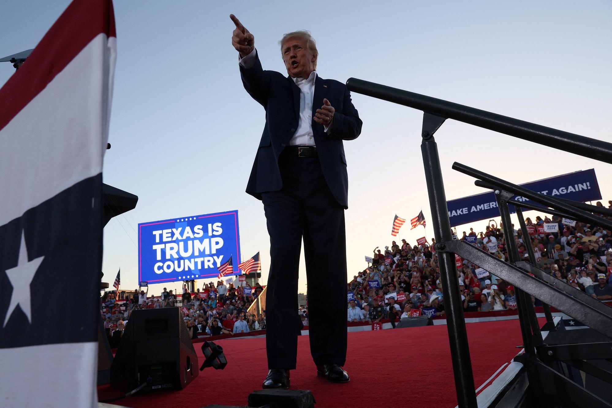 Cựu Tổng thống Mỹ Donald Trump trong cuộc vận động tranh cử đầu tiên sau khi tuyên bố ứng cử tổng thống trong cuộc bầu cử năm 2024, tại một sự kiện ở Waco, Texas ngày 25.3