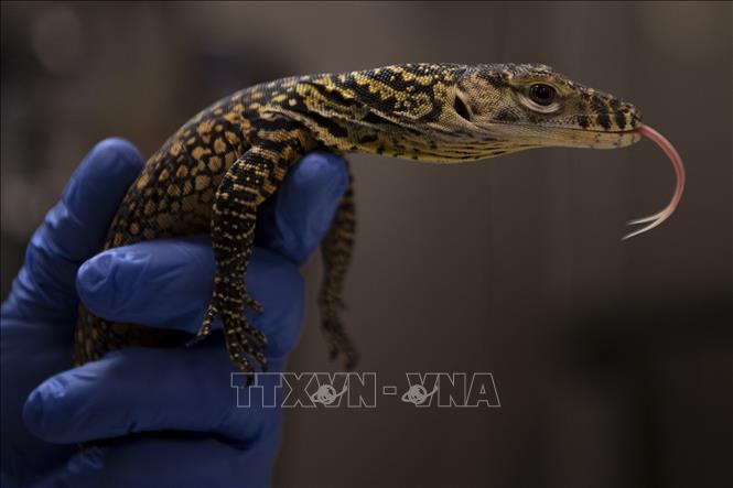 Con rồng Komodo mới chào đời mang tên Fenix tại sở thú Fuengirola, Tây Ban Nha, ngày 28/3/2023. Ảnh: AFP