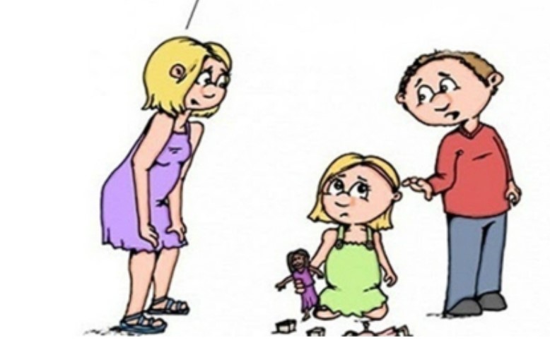 Mẹ cô bé đỏ mặt ngượng ngùng, đáp: