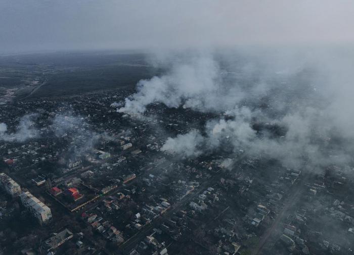 Toàn cảnh chiến trường thảm khốc Bakhmut nhìn từ trên cao.