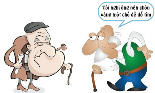 - Ấy ấy, bác cũng đã già lại bị mù lòa, nếu bác chôn ở nhiều nơi lỡ sau này có việc cần dùng đến sẽ khó khăn hơn với bác trong việc tìm kiếm. Nên theo tôi thì bác chỉ nên chôn vào một chỗ cho chắc.