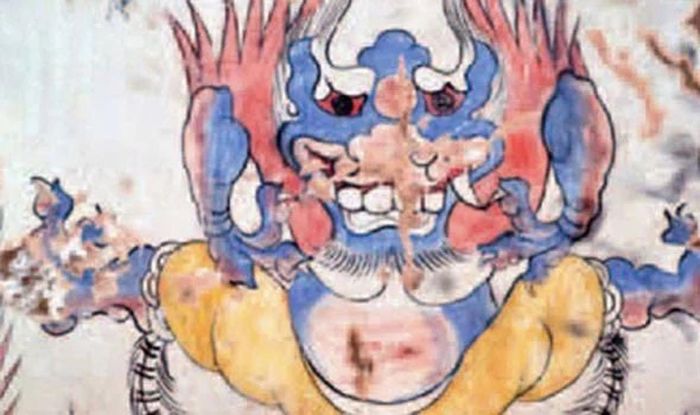 Trong những những bức tranh tường đầy màu sắc bao phủ 80m2 của lăng mộ, nổi bất nhất là bức tranh vẽ một con "quái vật xanh".