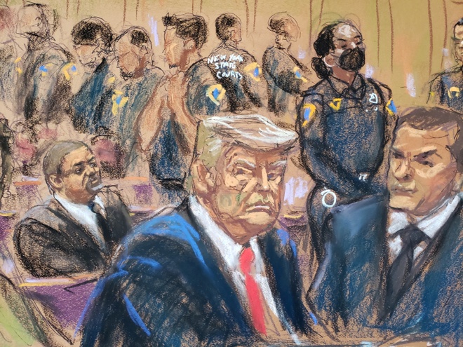 Tại tòa án, ông Trump xuất hiện trước thẩm phán và nghe thẩm phán đọc bản cáo trạng. Nhóm cố vấn của cựu tổng thống nói ông sẽ không nhận tội.