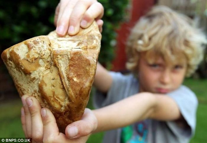 Charlie Naysmith, 8 tuổi, sống tại bang Southbourne, Anh tình cờ tìm thấy một tảng đá vàng nhạt nặng khoảng 600 gram. Theo đó, cậu mang tảng đá về mà không hay biết đó là báu vật quý giá.