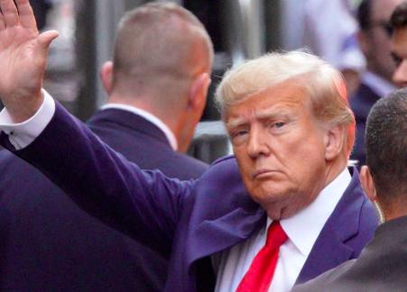 Cựu Tổng thống Mỹ Donald Trump đến ṭa án Manhattan ngày 4-4. Ảnh: Reuters