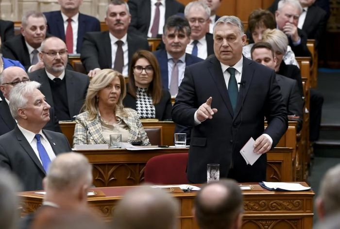 Thủ tướng Hungary Viktor Orban phát biểu trong ngày khai mạc kỳ họp mùa xuân của Quốc hội Hungary tại Budapest, ngày 27/2/2023. Ảnh: SCMP