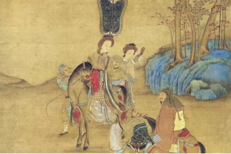 Phác họa Vương Chiêu Quân ngồi trên lưng ngựa. (Ảnh: Sohu)