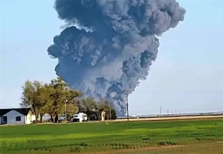 Cột khói đen còn bốc lên cao tại trại bò Southfork Dairy Farms sáng thứ Ba, 11 tháng 4, 2023, sau khi xảy ra một vụ nổ vào đêm thứ Hai. (Castro County Emergency Management/ Houston Chronicle)